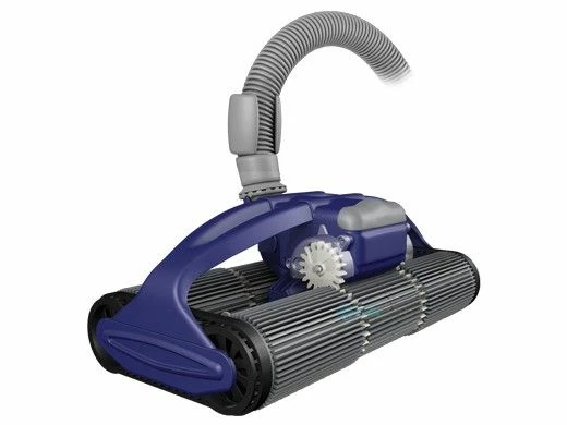 a swimming pool without the added cost of electricity to the unit. With an ultra-wide cleaning path, Robo H2O cleans pools quickly and efficiently. It uses V-pattern cleaning and a twin drive roller system to provide maximum coverage and scrubbing ability. Robo H2O’s patented* self-cleaning gears allow the cleaner to quickly change direction, while providing greater reliability with less wear. Using this revolutionary new gear system, debris does not pass through the engine of Robo H2O which reduces the likelihood of jamming. Maintenance for this cleaner is simple and easy to do for the DIY homeowner. It poses a lower cost of ownership than other pool cleaners due to its high efficiency modular design. Robo H2O’s steering mechanism is programmed and incorporates a full function bi-directional steering feature in its forward and reverse cycles. It also has adjustable suction control that allows for optimum performance in various pool types. Robo H2O’s smart track system is also an improvement on traditional designs as the tracks only make contact as needed to navigate around obstacles and during transitions. This means significantly less wear on what traditionally has been a fast-wearing item in the pool cleaner market.