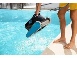 - With so many innovative features, it’s no wonder the Dolphin cleans so exceptionally well. Pool cleaning has never been easier with the plug-and-play system. Just plug in the robot, drop it into the pool, and turn on the power supply