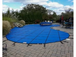Merlin 10-Year Solid Safety Cover With Drain Panel | Rectangle 16′ X 32′ | 1′ Or 2′ Offset 4′ X 8′ Left Side Step | Tan | 19W-X-TN