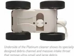 - Four wheel design prevents tipping (common with 3 wheel cleaners) for uninterrupted and unattended performance