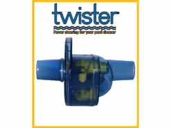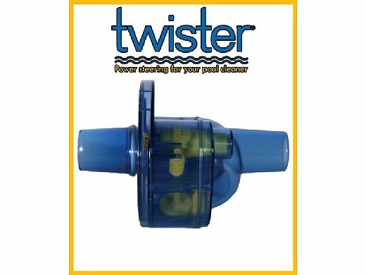 TWISTER is a new innovation that fits to your existing pool cleaner hose. It power steers your pool cleaner to completely clean your pool without getting stuck in corners. Powered by the constant flow of water through the pool cleaner hose, TWISTER will counter-rotate the hose about 3 times per hour. A unique Angled Adaptor (included) is fitted between the pool cleaner and the hose. The counter-rotation of the hose causes the adaptor to continually change direction, freeing your pool cleaner from corners and steering it to areas it never reached before.