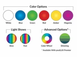 - Advanced color control – adjust your pool’s color (49 color options and 2 light shows)