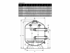 | Model | Port Size (in) | Bed Depth (in) | Inner Dia. (in) | Filter Area (sq ft) | Flow Rates gpm/sq ft 5 10 15 20 | Media Volume (gallons) | Gravel 1.2-2.4 (lbs) | Sand 0.6-1.2 (lbs) | |||